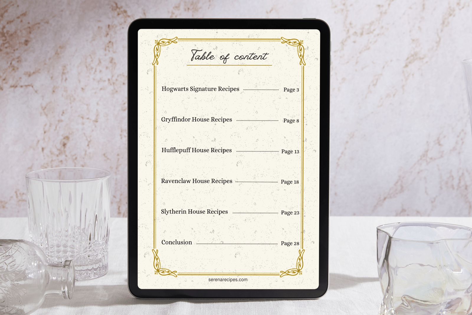 This beautifully designed, 29-page full-color PDF features 25 spellbinding recipes, each inspired by the halls of Hogwarts and the unique spirit of its four great houses: